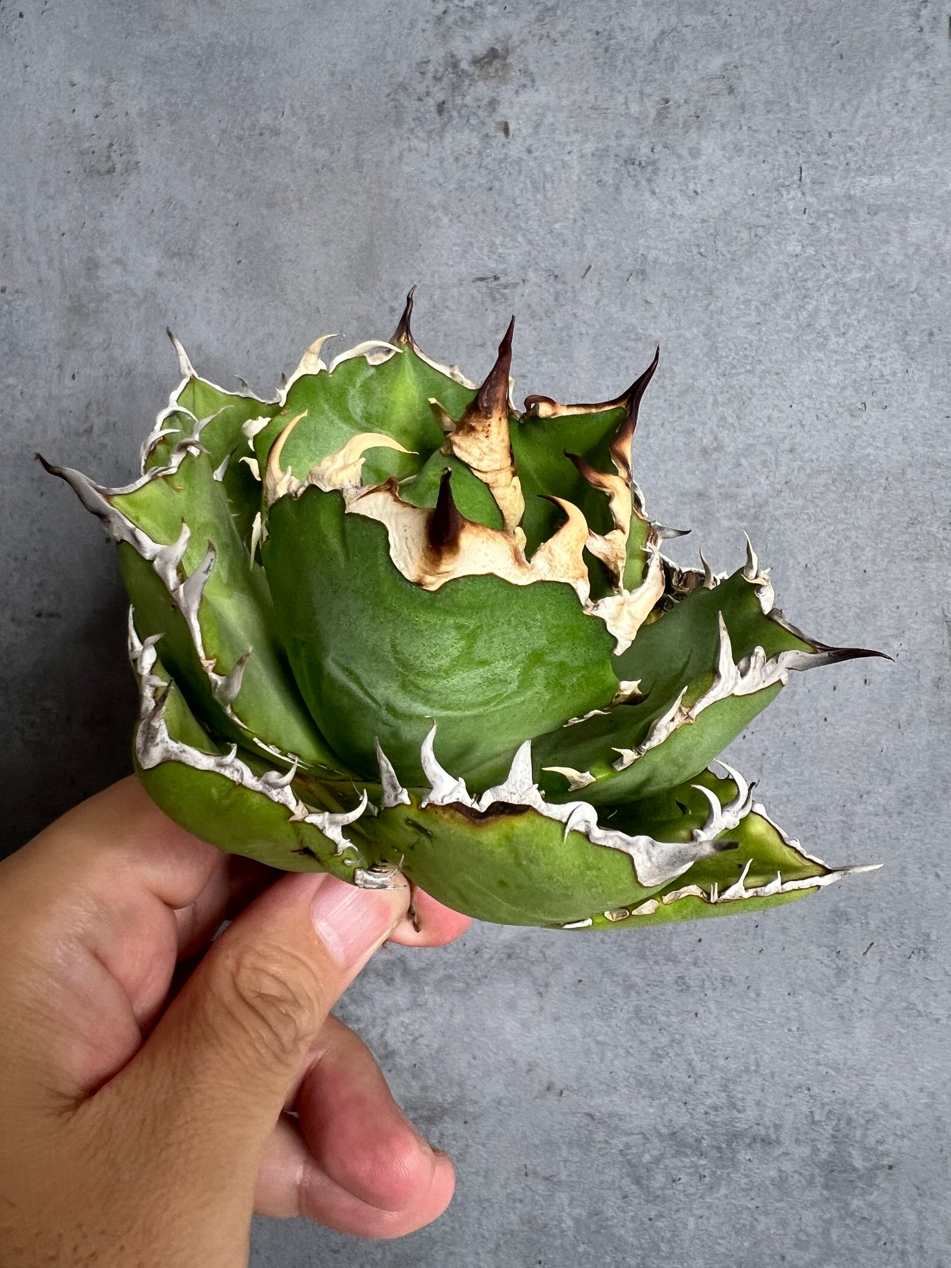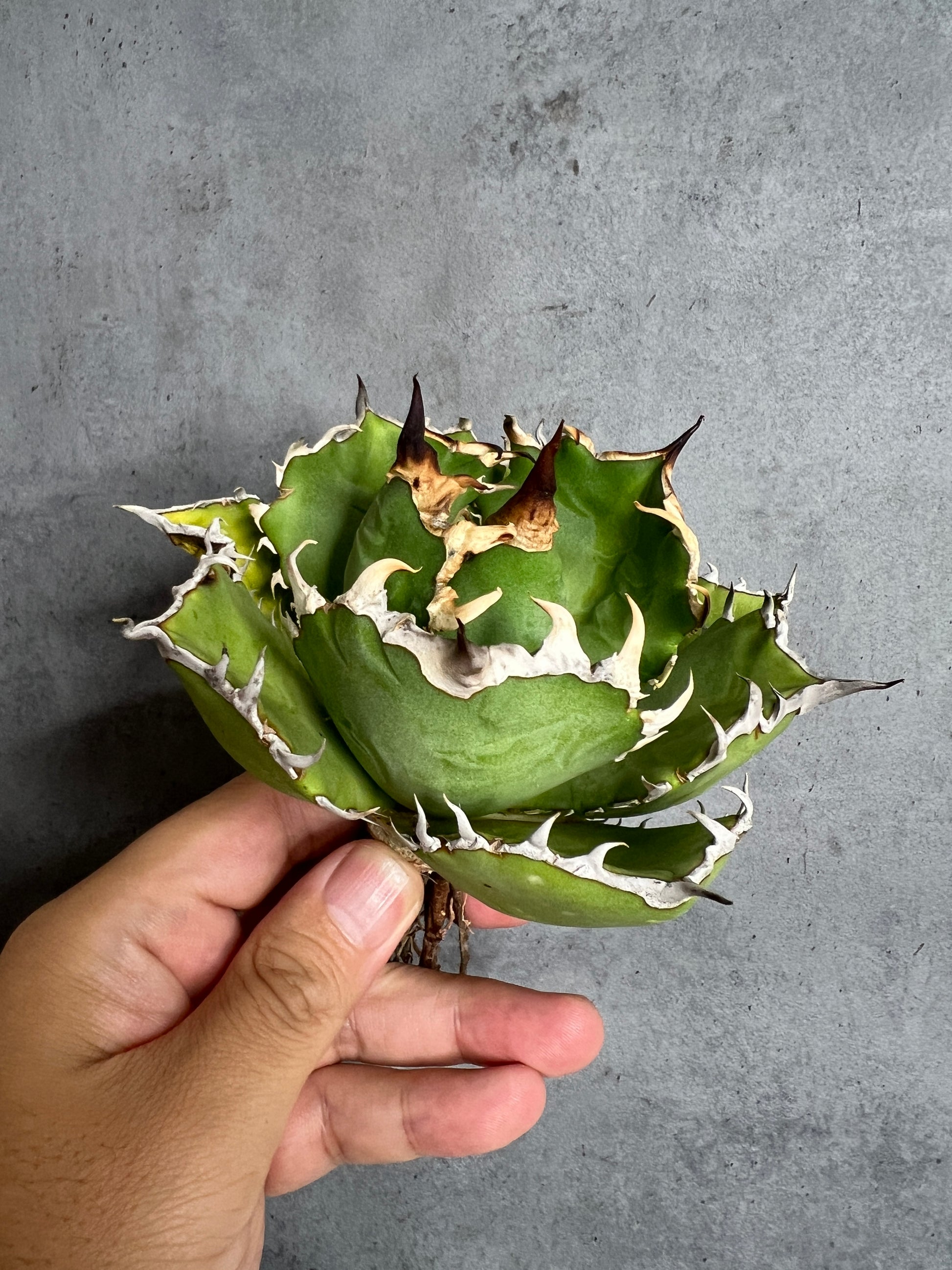 中でも「アガベ・オテロイ(チタノタ)」は、メキシコの砂漠地帯に自生する小型種で、鋭い棘と独特のフォルムが特徴的な園芸分野で、特に人気の高い品種です。