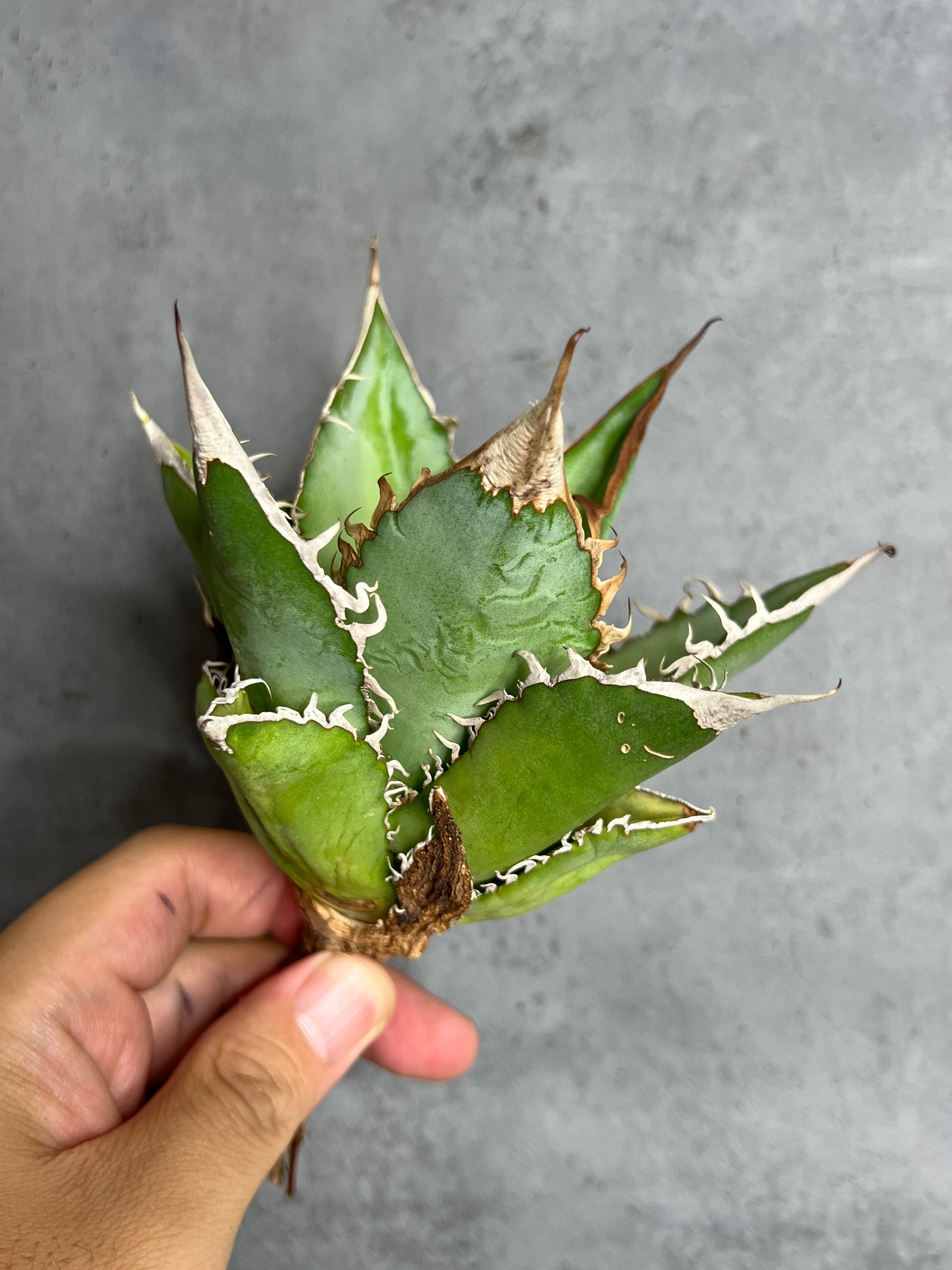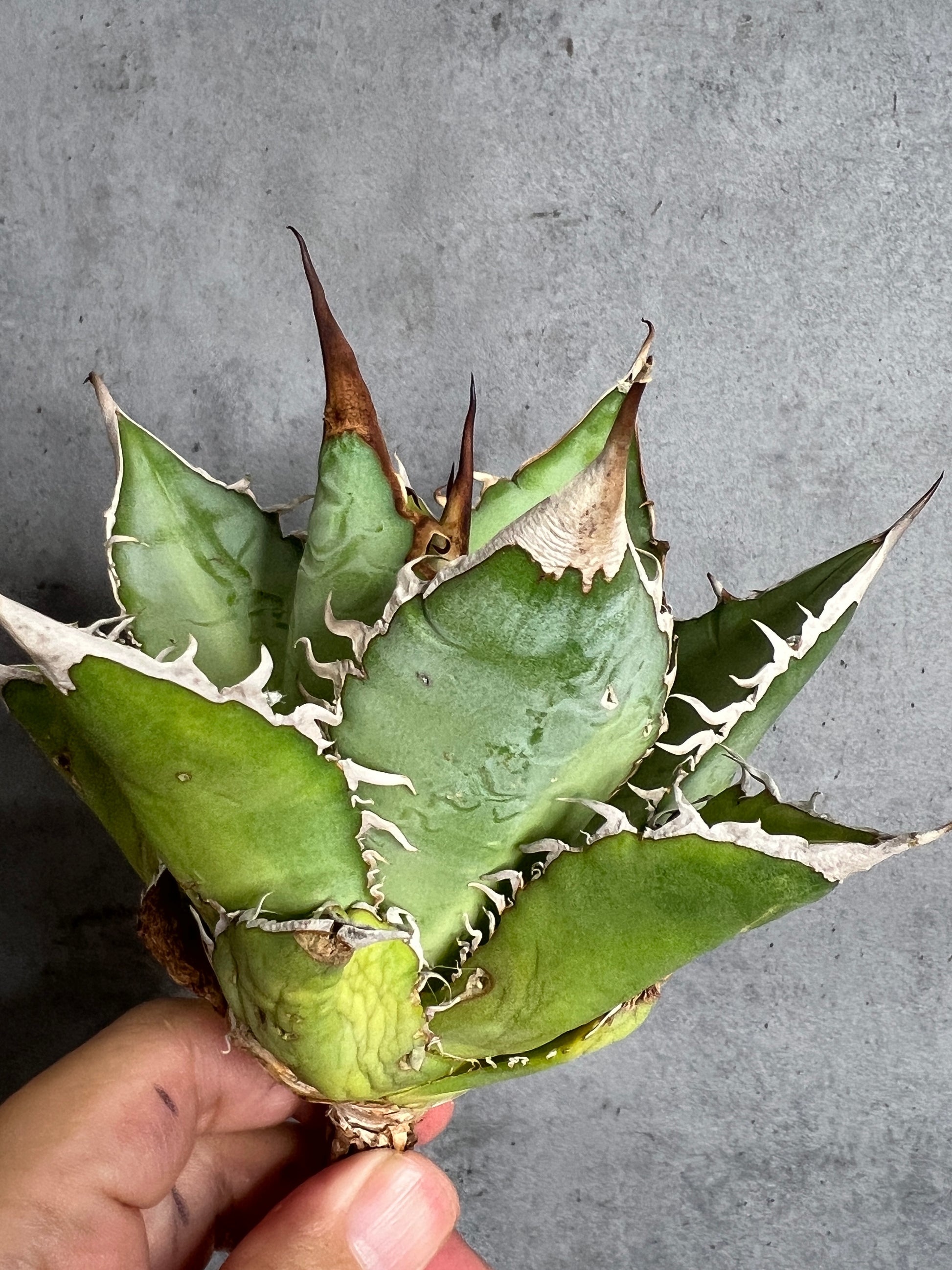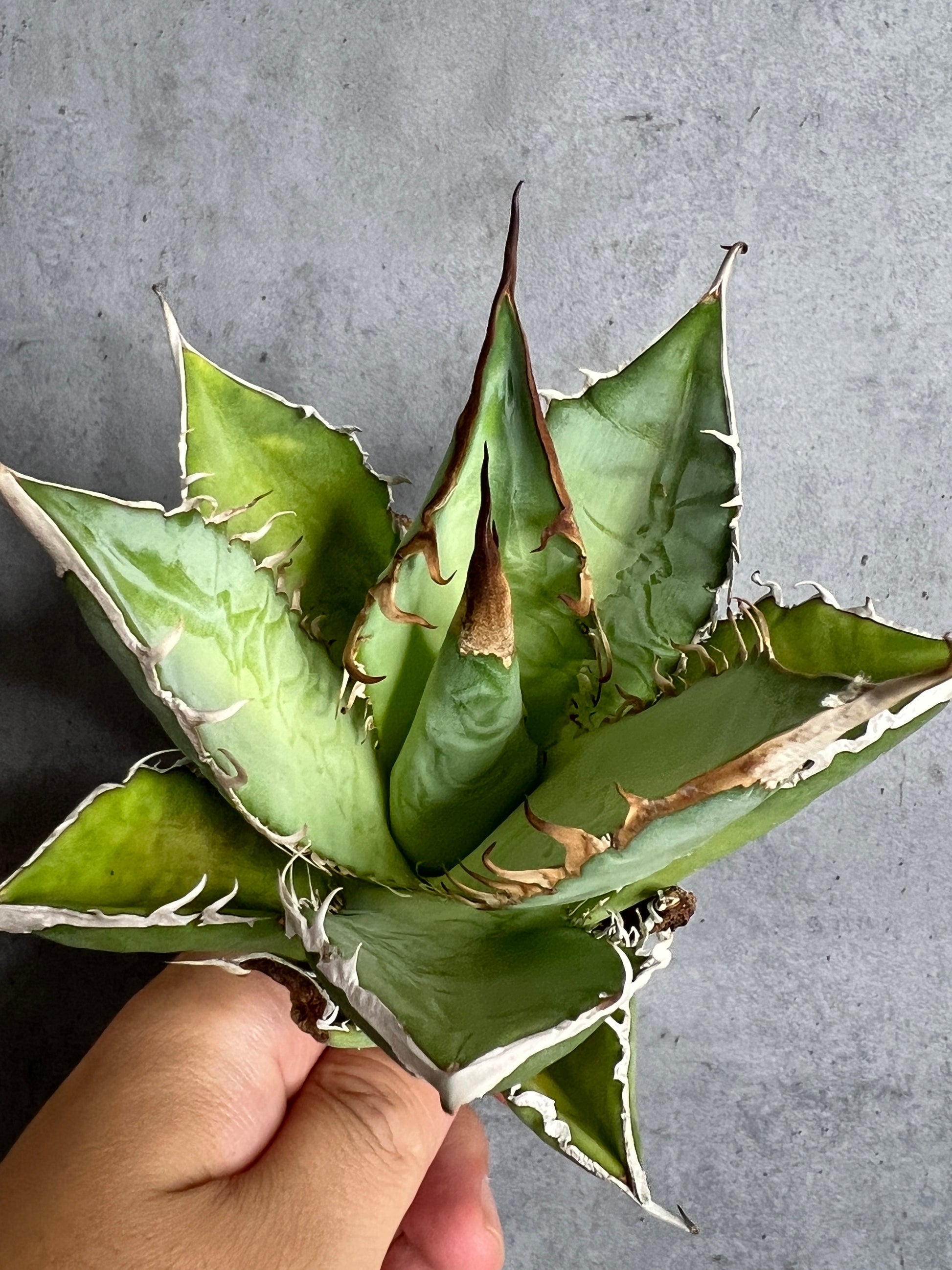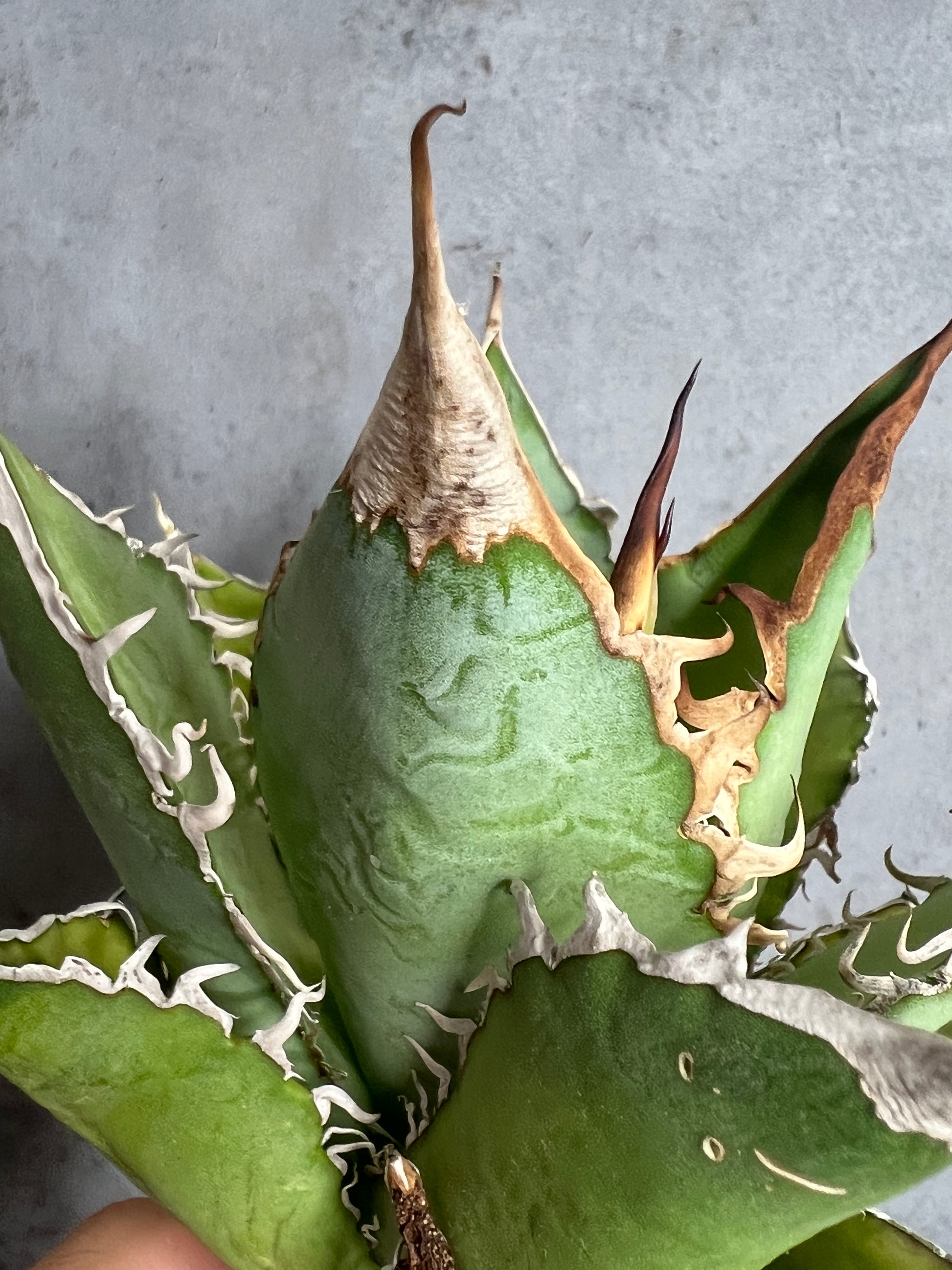 中でも「アガベ・オテロイ(チタノタ)」は、メキシコの砂漠地帯に自生する小型種で、鋭い棘と独特のフォルムが特徴的な園芸分野で、特に人気の高い品種です。