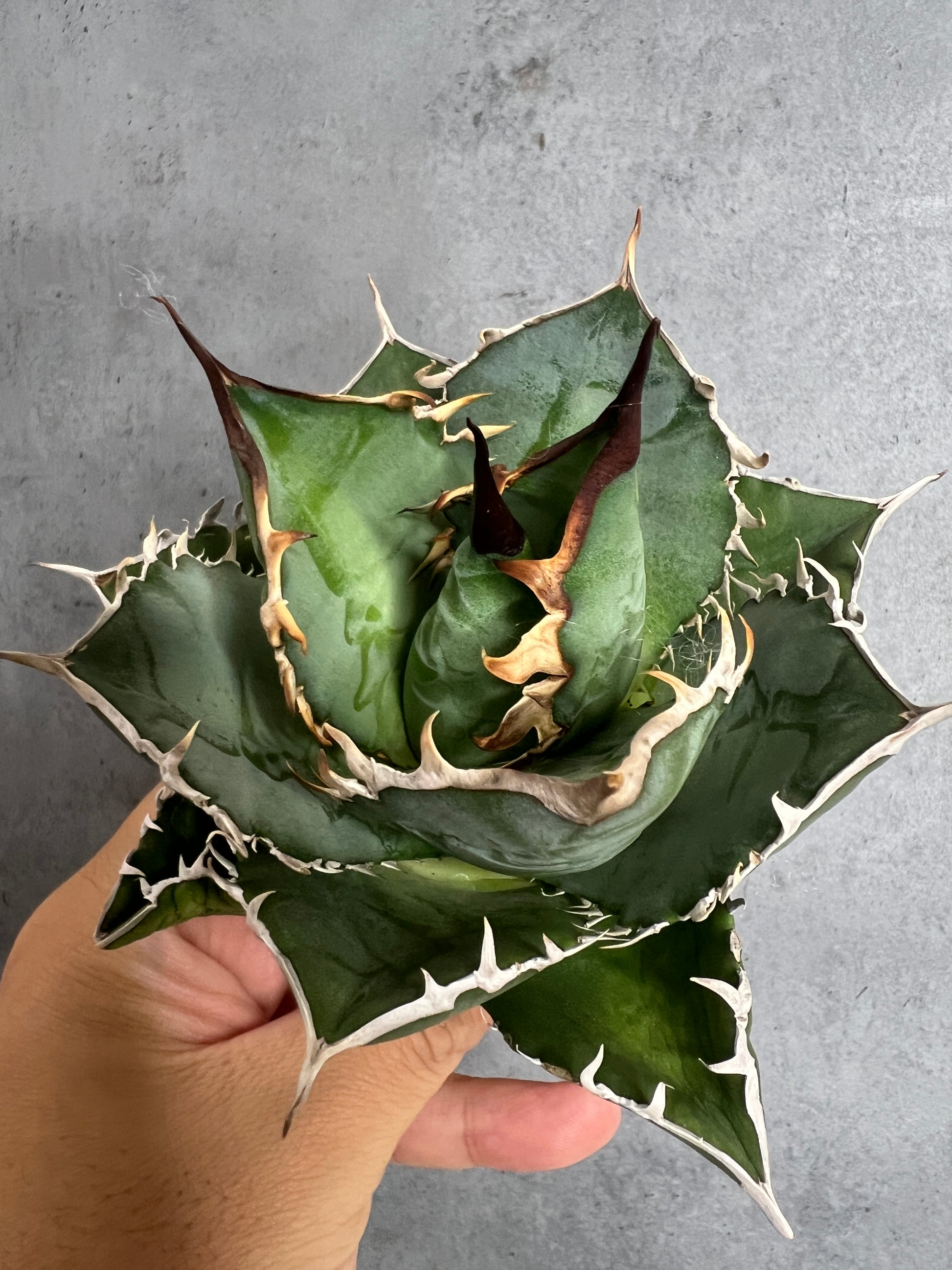 中でも「アガベ・オテロイ(チタノタ)」は、メキシコの砂漠地帯に自生する小型種で、鋭い棘と独特のフォルムが特徴的な園芸分野で、特に人気の高い品種です。