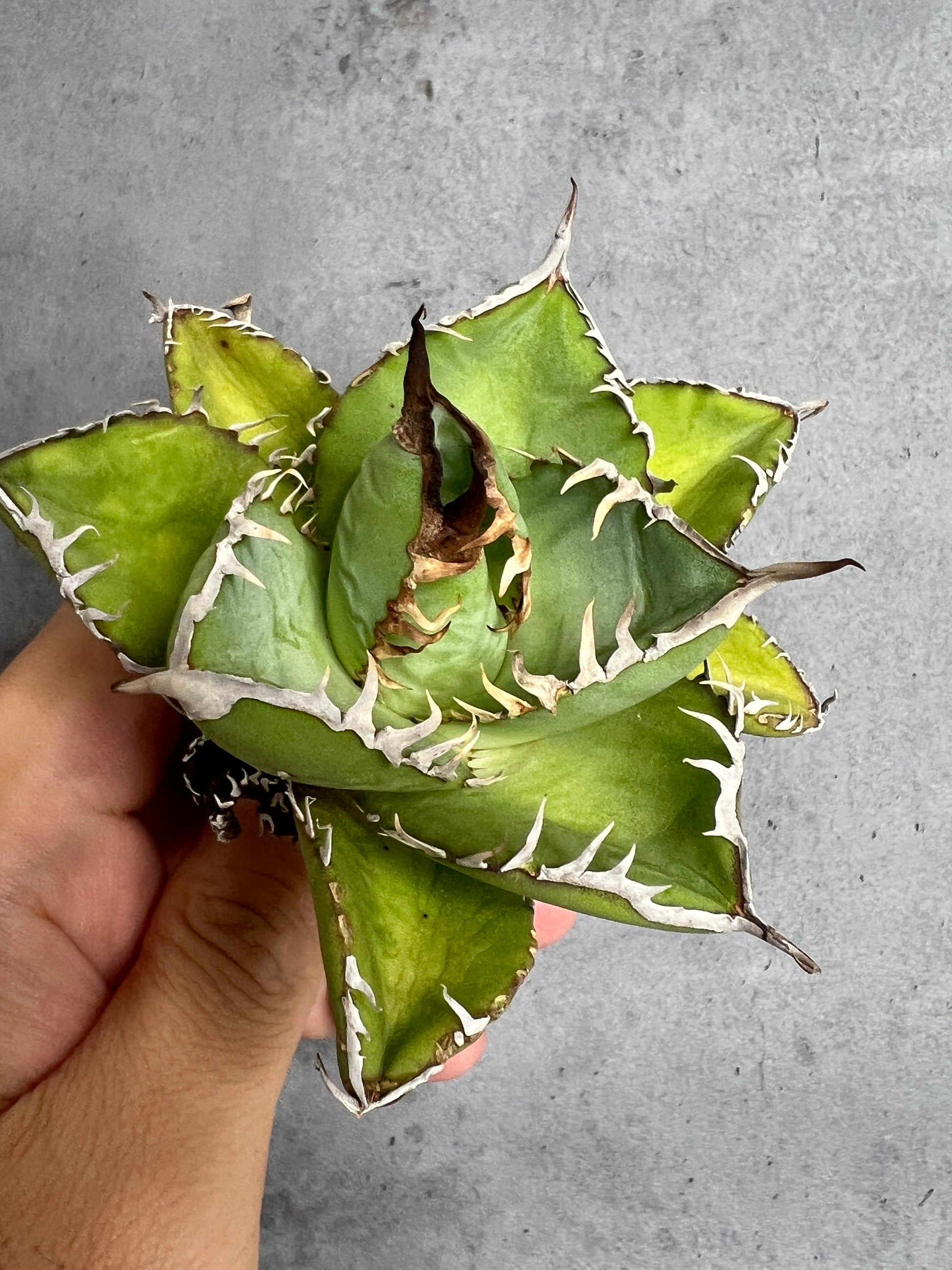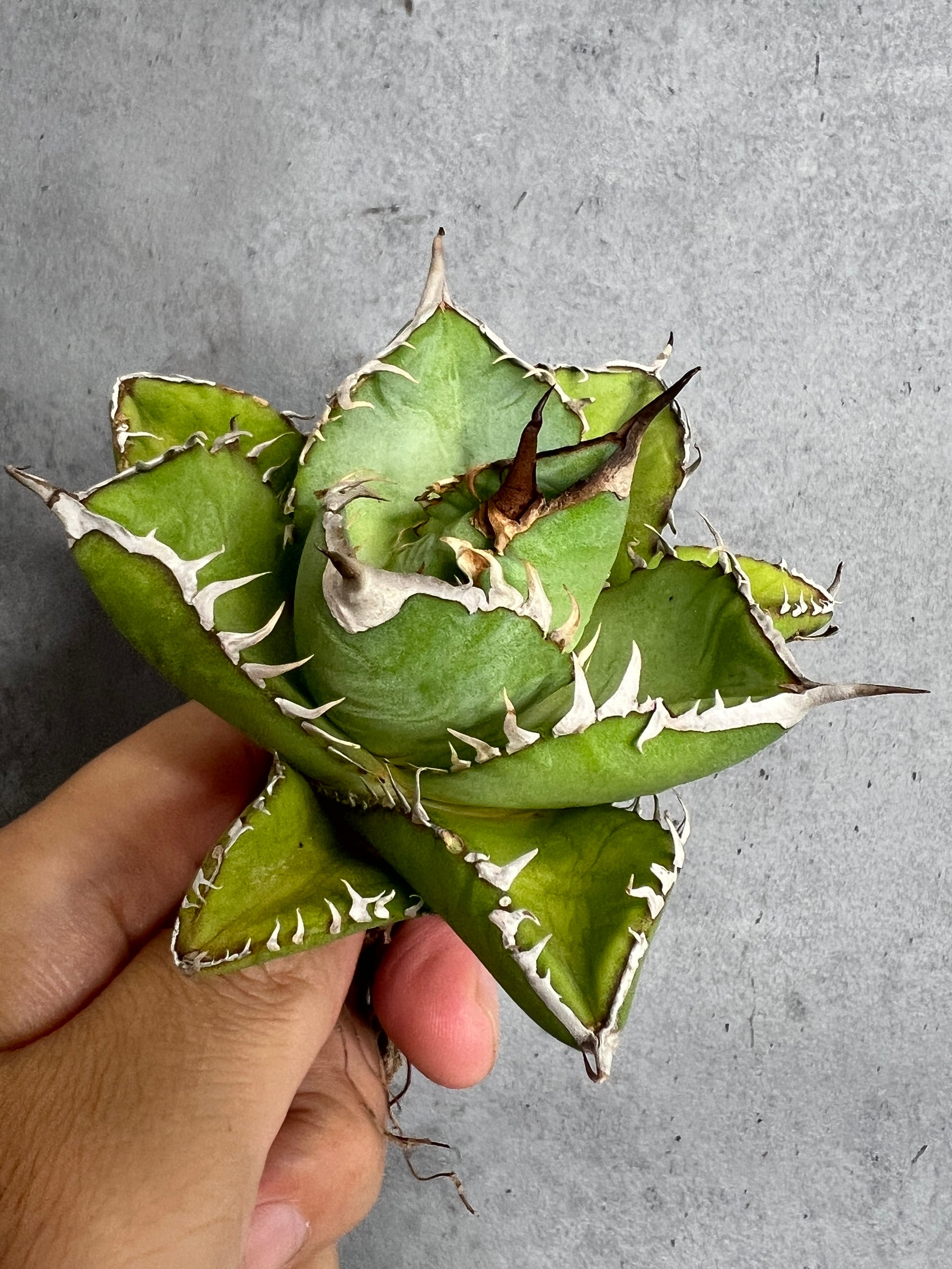 中でも「アガベ・オテロイ(チタノタ)」は、メキシコの砂漠地帯に自生する小型種で、鋭い棘と独特のフォルムが特徴的な園芸分野で、特に人気の高い品種です。
